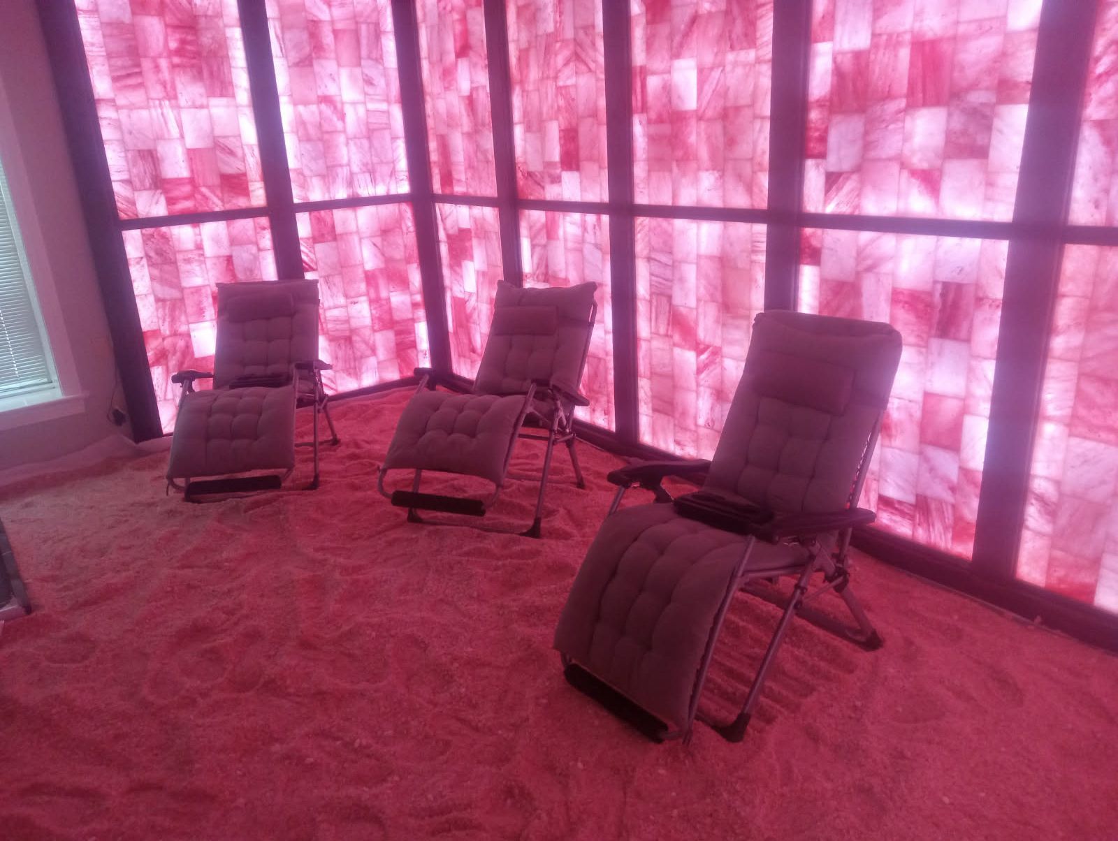 The moment you enter, you'll notice the difference. Pink Himalayan salt crystals line the walls and crunch softly beneath your feet, while a state-of-the-art halogenerator disperses microscopic salt particles into the air. Each breath draws in negatively charged ions that can help clear your airways, reduce inflammation, and ease stress.