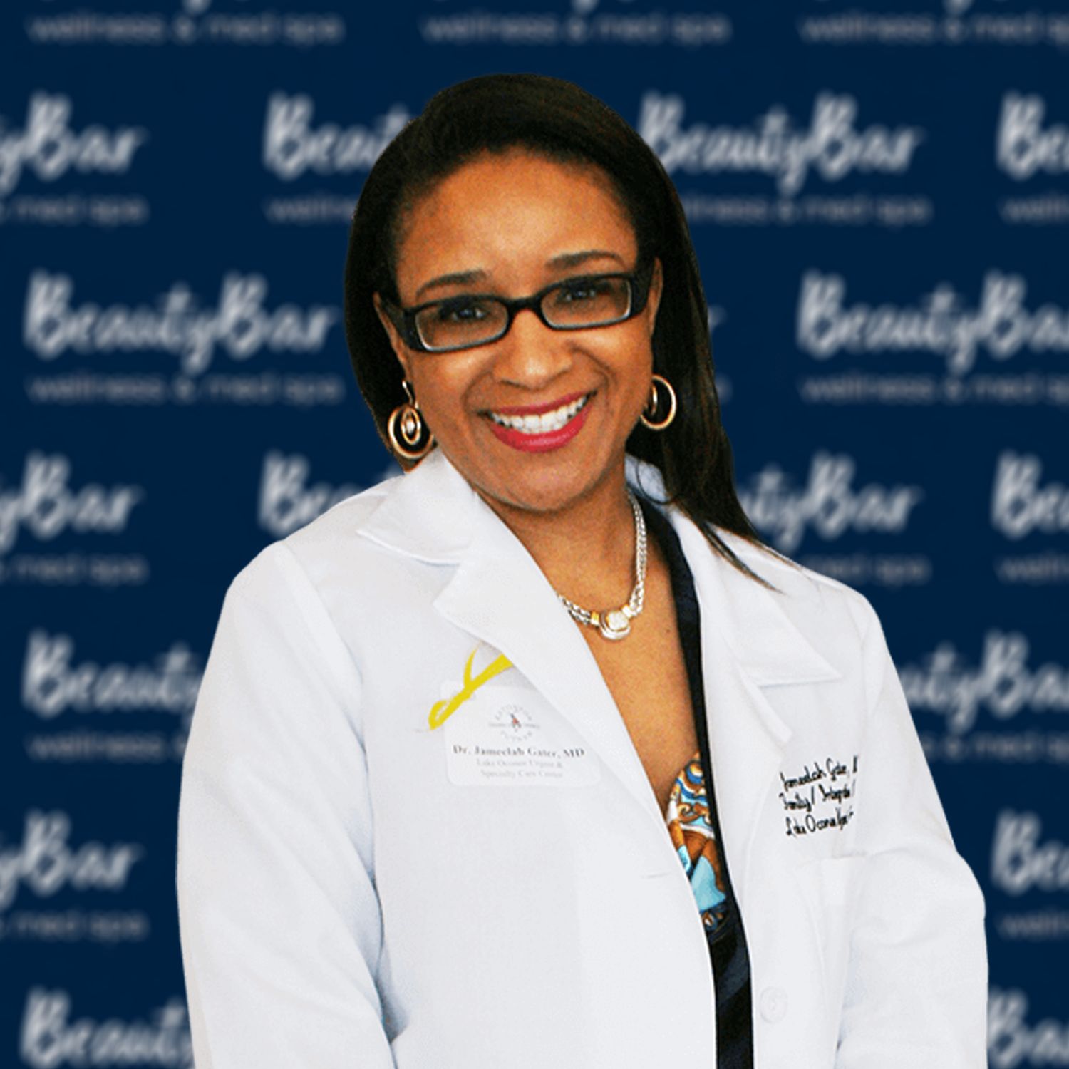 Dr. Jameelah Gater is a board-certified family medicine physician and integrative medicine specialist. A graduate of the University of Michigan and Emory University, she combines advanced medical training with a passion for holistic wellness and aesthetics. As Medical Director of Beauty Bar Med Spa, Dr. Gater ensures every treatment is safe, effective, and aligned with each client’s overall health and confidence goals.